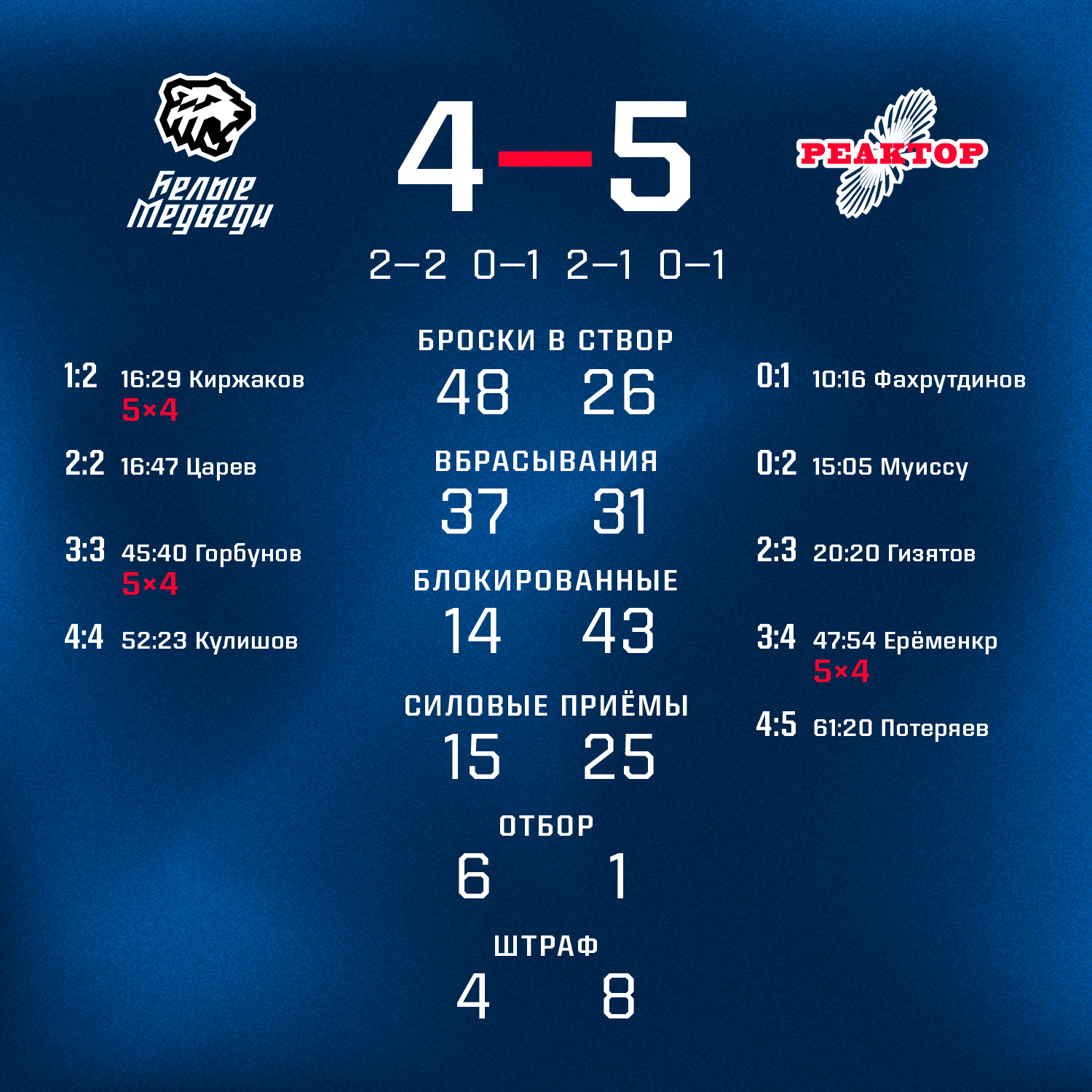 В дополнительное время победу «реакторщикам» принес точный бросок Алексея Потеряева.