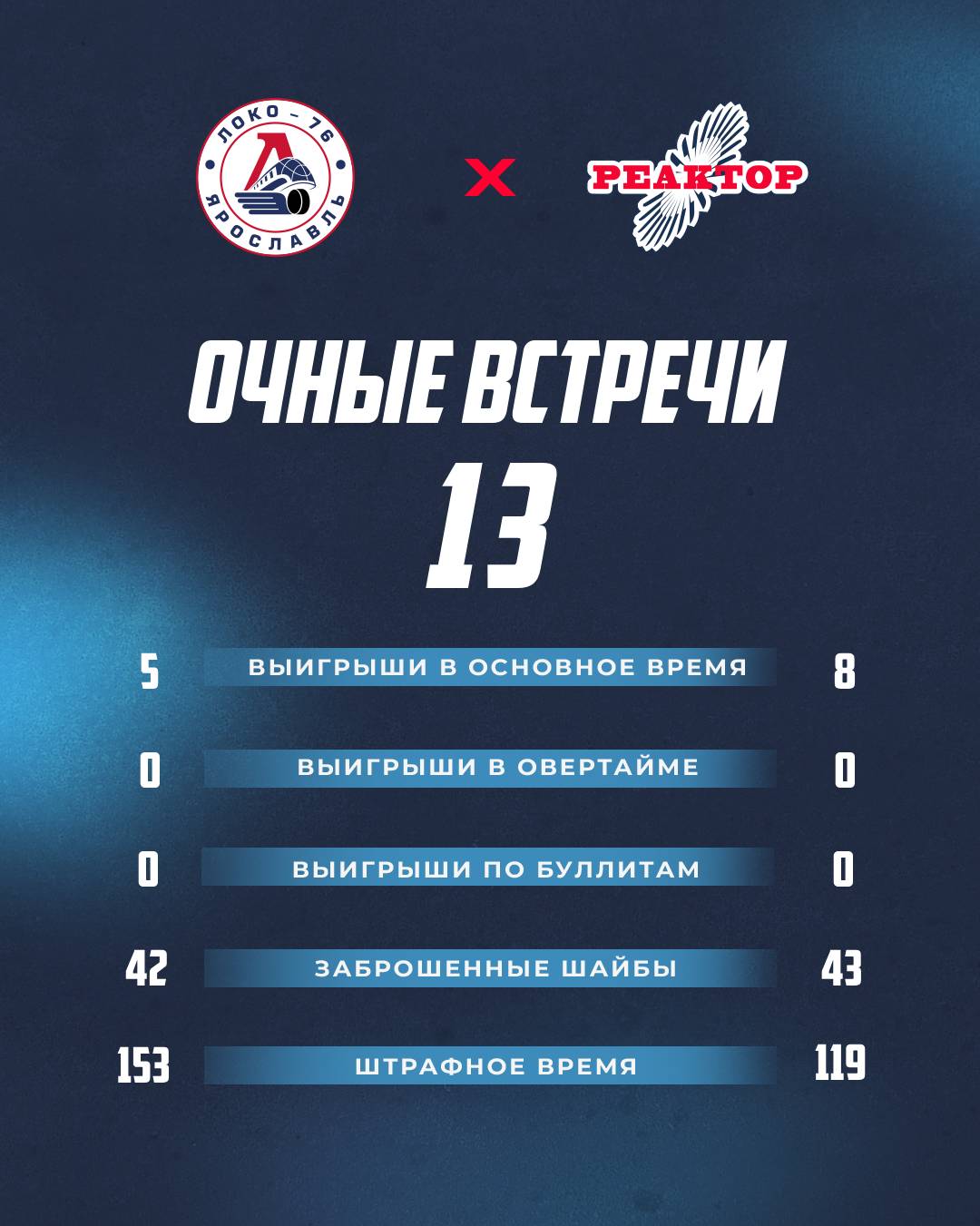 На утро 30 января «Локо-76» занимает пятое место в «серебряном» дивизиона «Востока» МХЛ с 42 очками после 40 игр. «Реактор» же укрепился на третьем месте с 48 баллами после 38 матчей.
