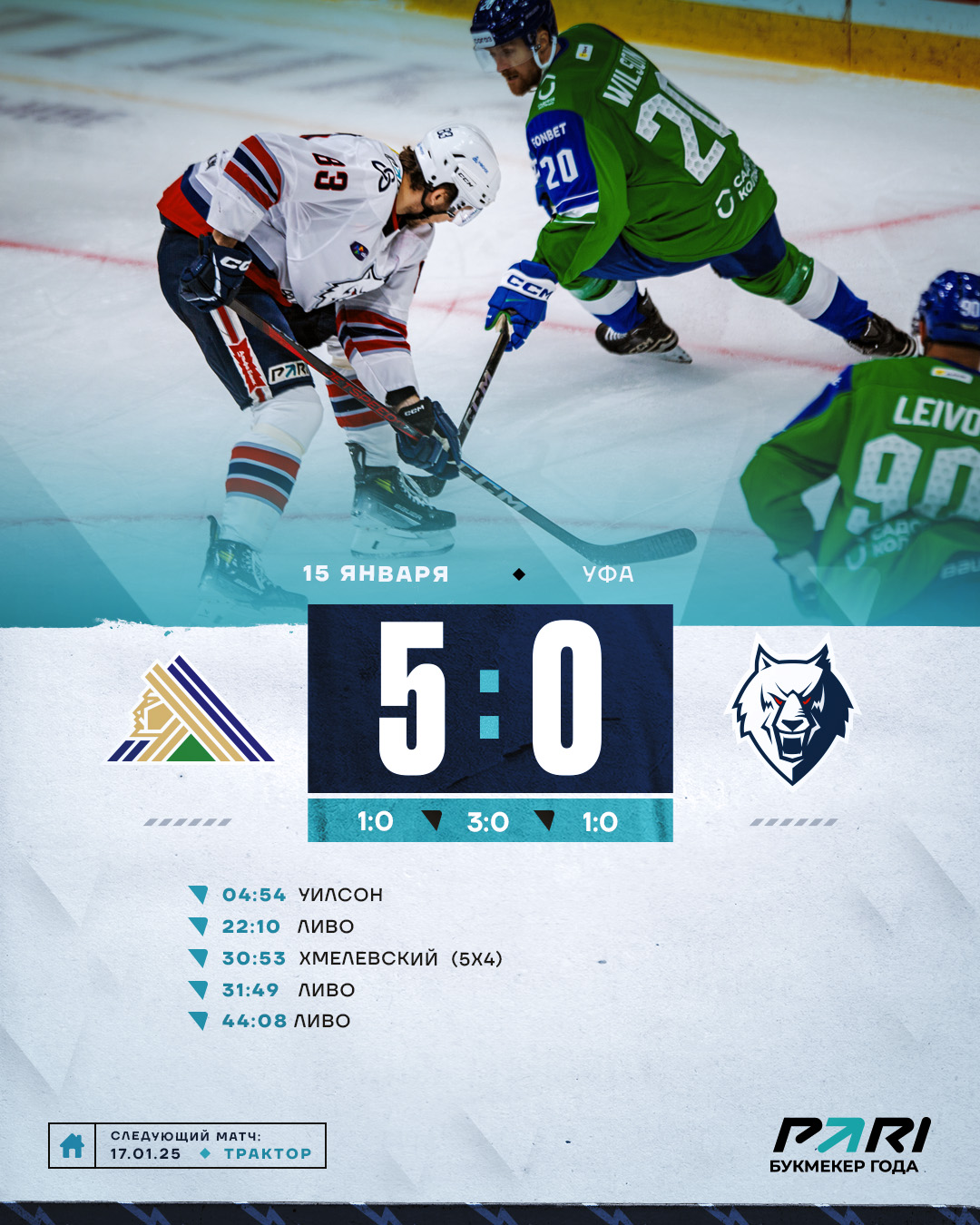 Казалось, что вполне возможно повторение сценарий домашнего матча с уфимцами недельной давности, когда гости отыгрались с 0:2. Однако этого не произошло. Более того, «волки» еще два раза пропустили. Да, последние минут пять второго периода наши парни завладели инициативой, но на последнем рубеже Вязовой был на высоте.