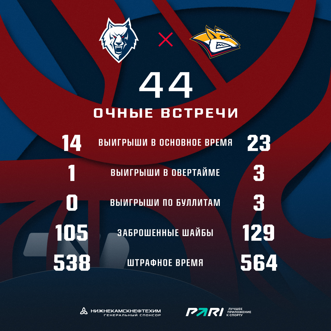 Встреча с гостями из Магнитогорска стартует в 19 часов. Приходите поддержать «волков» на трибуны «Нефтехим Арены».Ниже приводим статистику наших противостояний с магнитогорцами в КХЛ.
