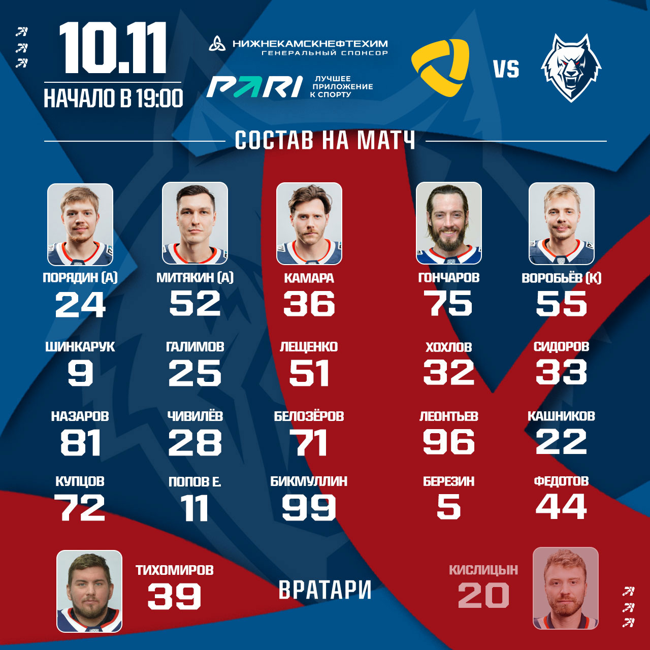 «Северсталь»- «Нефтехимик»: состав нашей команды