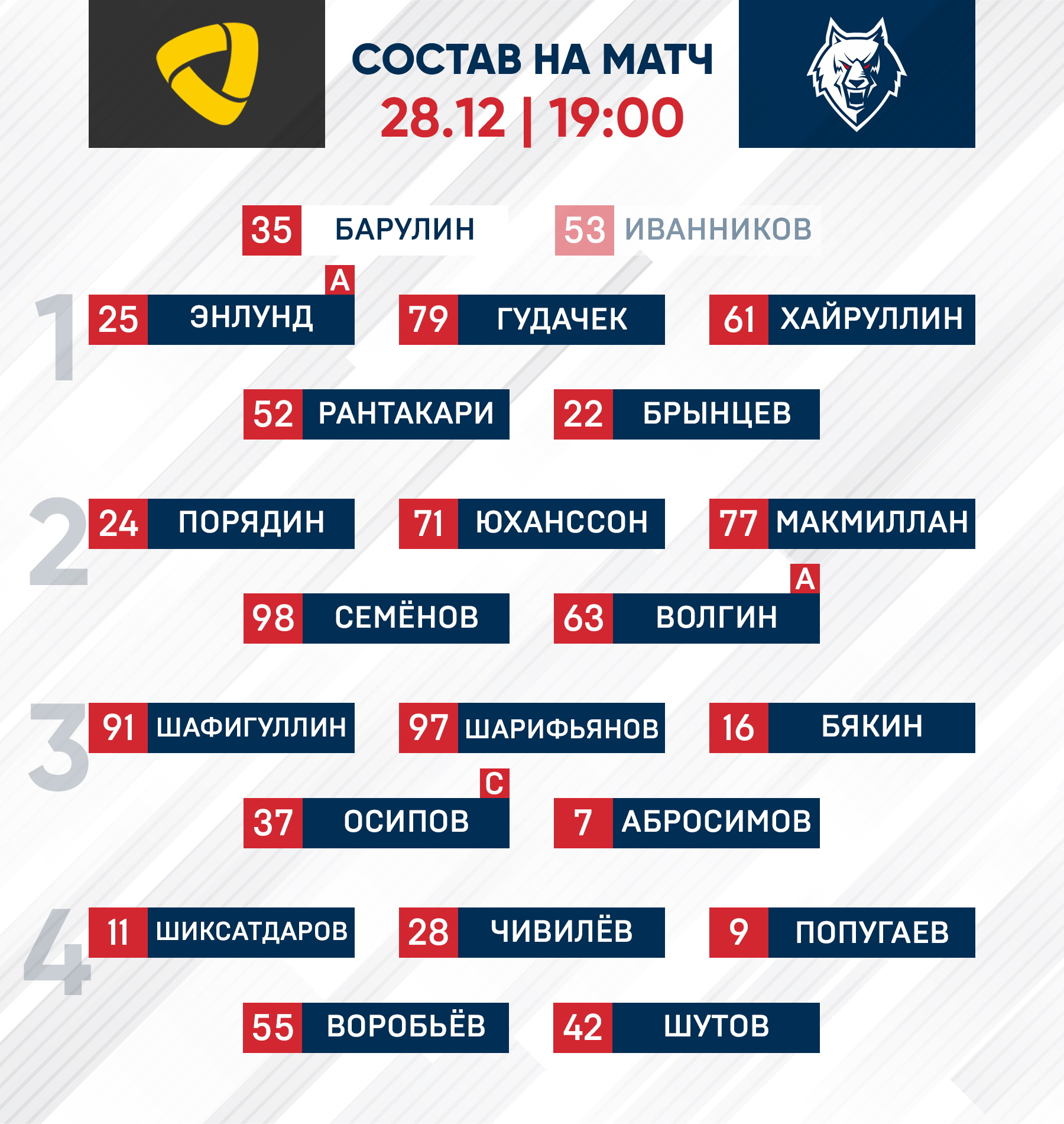 «Северсталь» - «Нефтехимик»: состав нашей команды