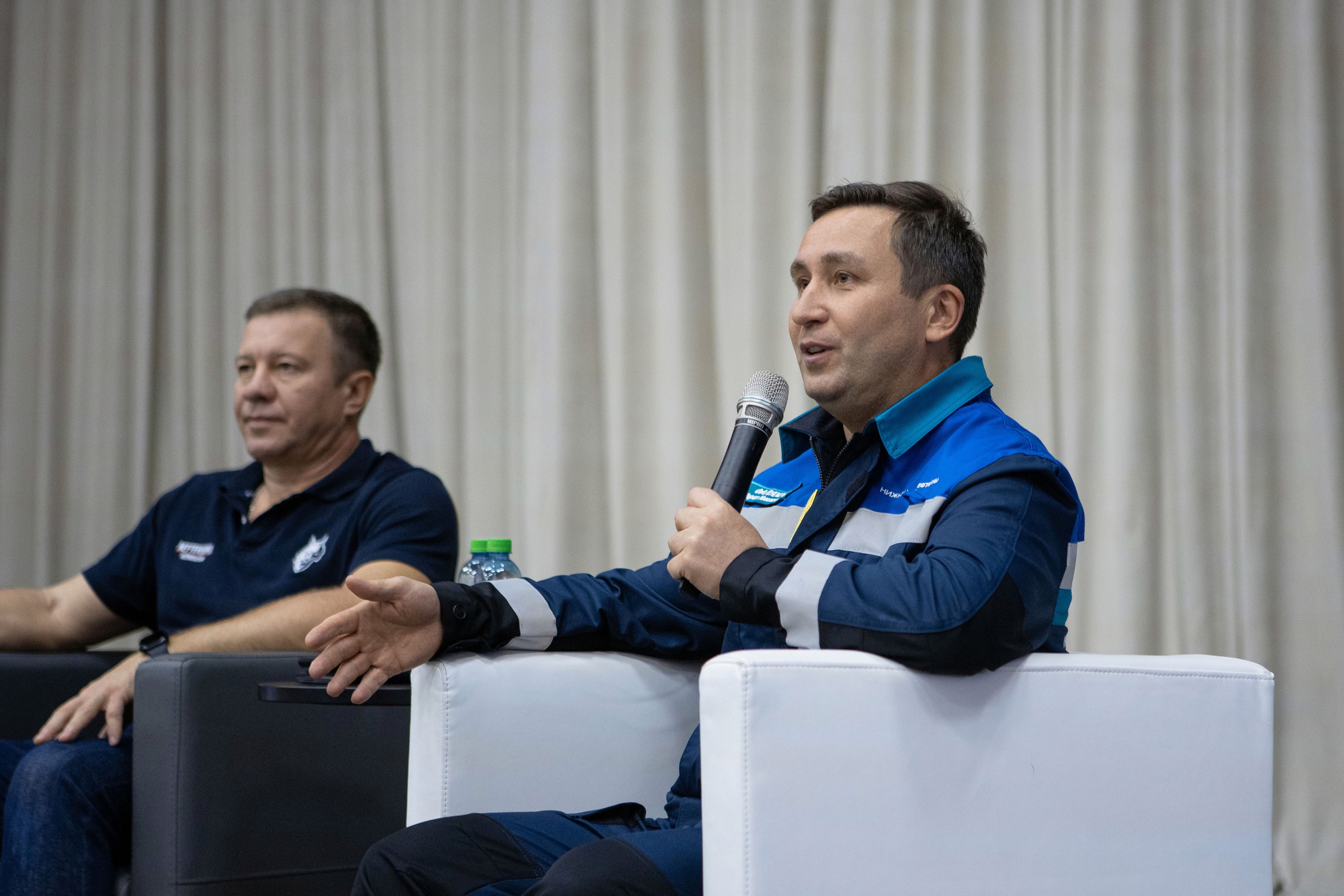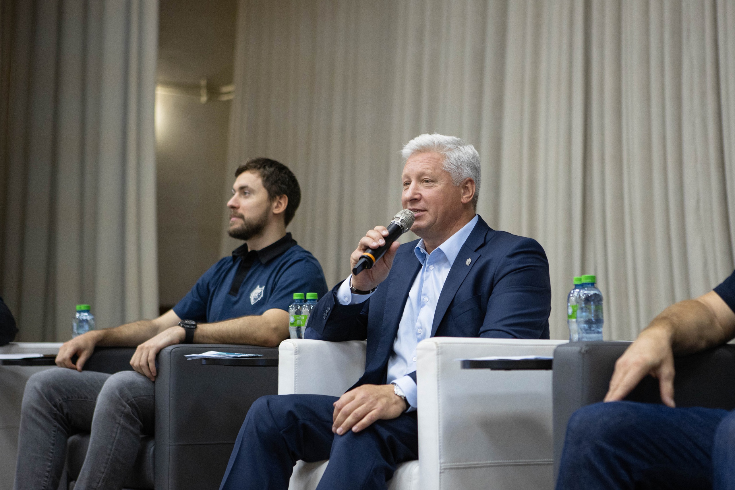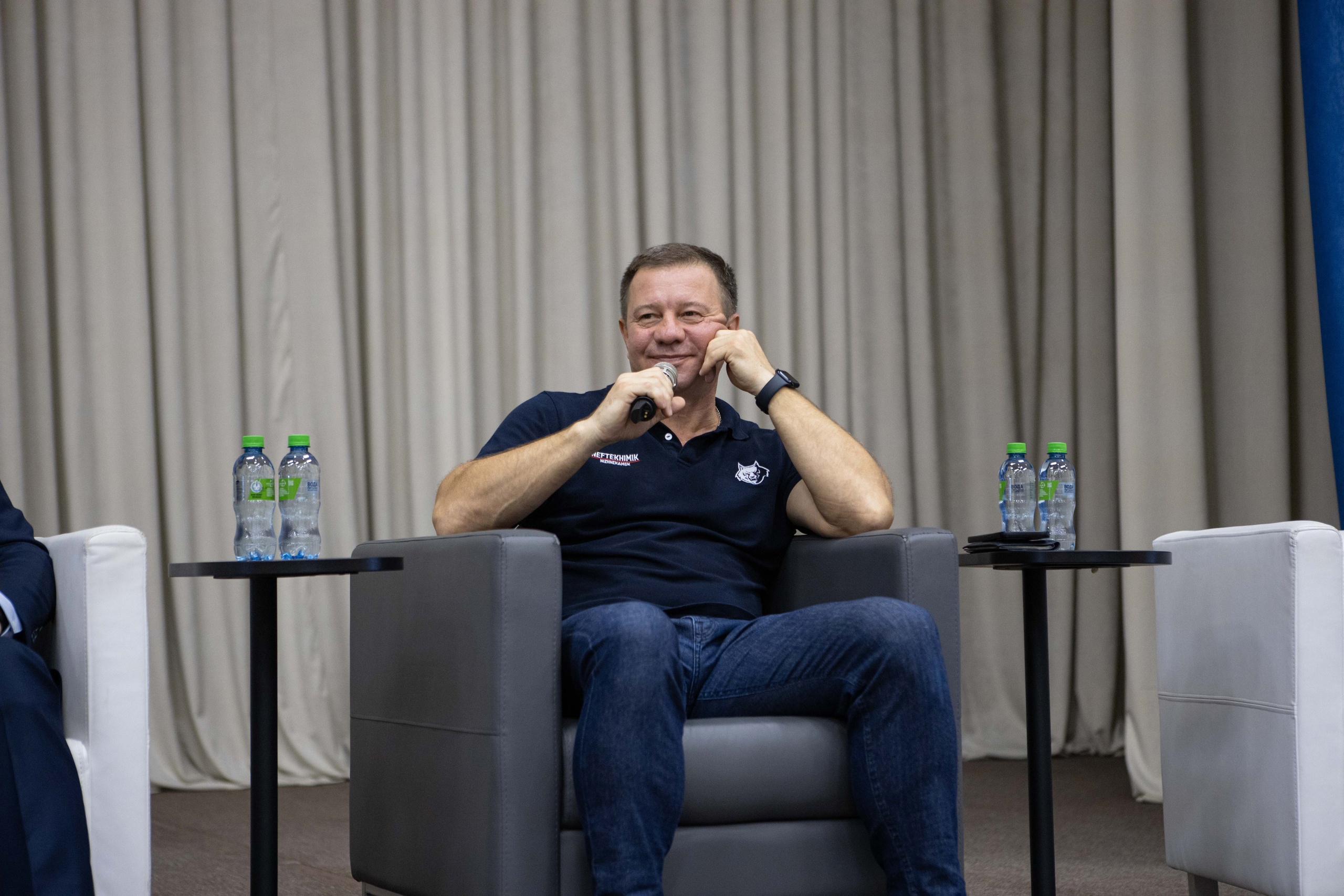 Перед болельщиками также выступили генеральный директор ХК «Нефтехимик» И. Ларионов, главный тренер О. Леонтьев, капитан команды А. Дергачев.