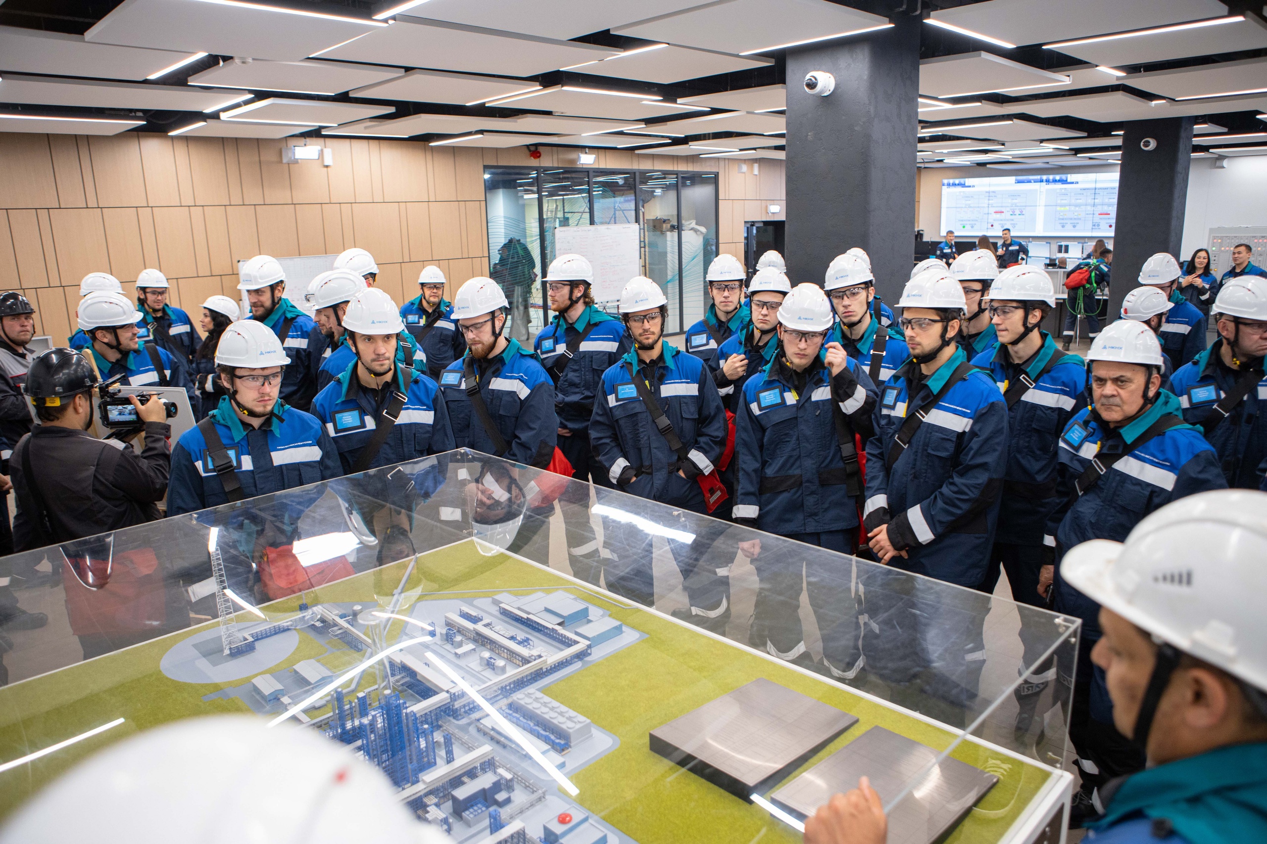 Сегодня хоккеисты и тренерский штаб «Нефтехимика» в полном составе побывали в ПАО «Нижнекамскнефтехим». Переодевшись в заводскую спецовку, они отправились на экскурсию по территории генерального спонсора.