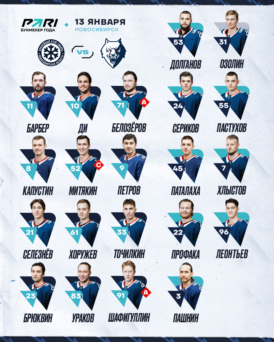 «Сибирь» - «Нефтехимик»: состав нашей команды