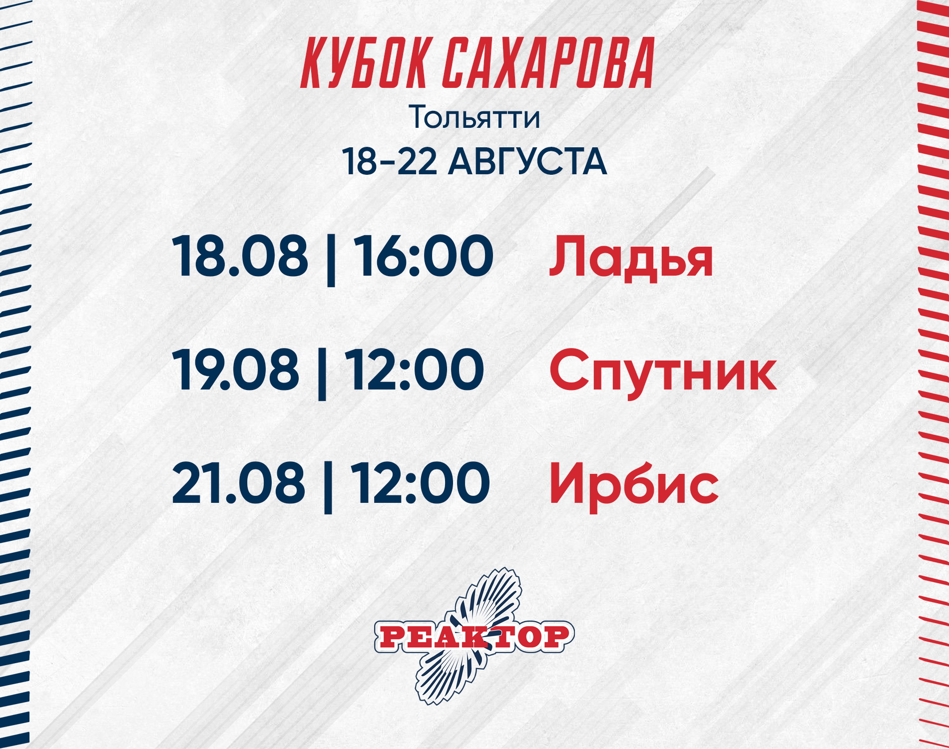 Состав и расписание матчей «Реактора» на «Кубке Сахарова»