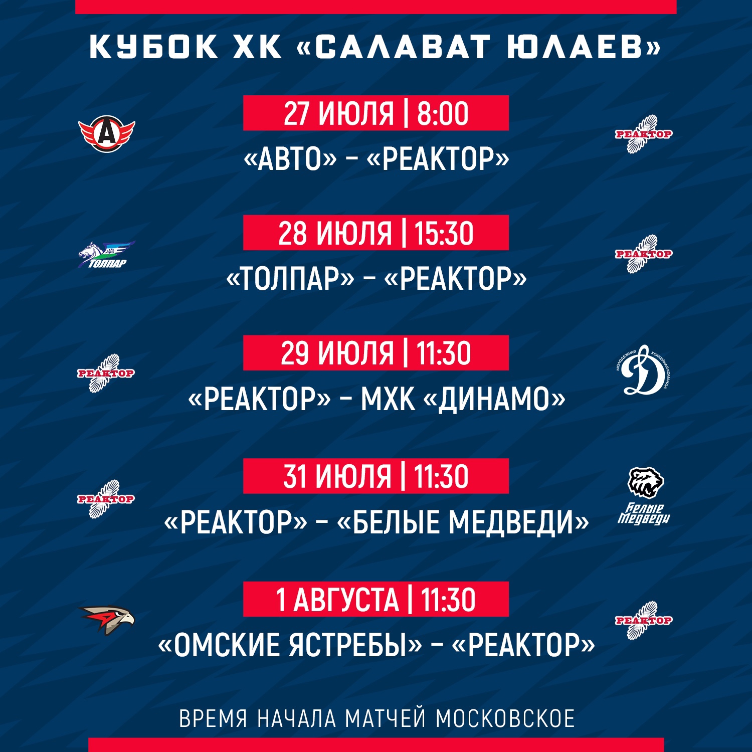 «Реактор» стартует на турнире матчем с «Авто». Полностью расписание игр команды выглядит так.