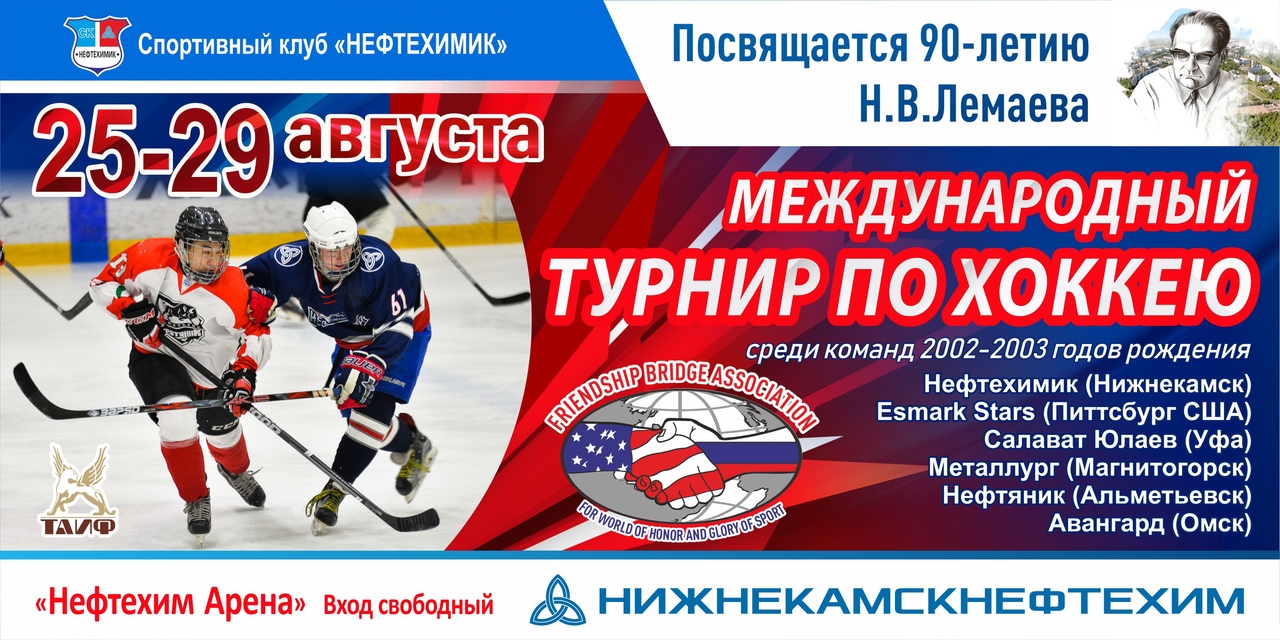 В Нижнекамске состоится международный турнир по хоккею среди юниорских команд, посвящённый 90-летию основателя и руководителя градообразующего предприятия «Нижнекамскнефтехим» Николая Васильевича Лемаева.