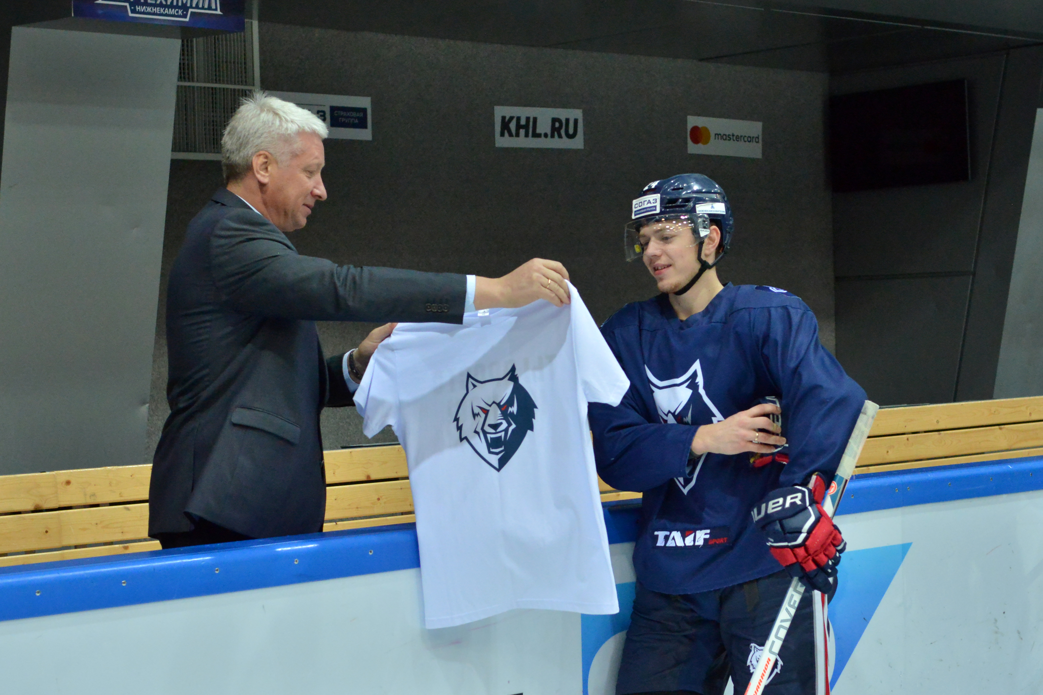 Сегодня перед утренней тренировкой директор ХК «Нефтехимик» Игорь Ларионов вручил Паше наш «космический» подарок.