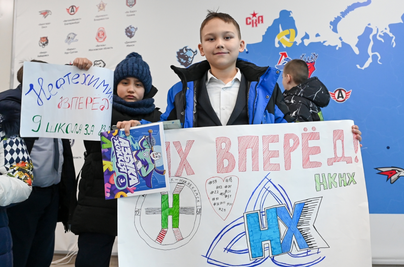 В завершении хоккейного праздника – каждый ребенок получил в подарок «Азбуку хоккея» и билет на один из ближайших матчей «Нефтехимика», на который они смогут прийти всем классом и громко прокричать «Кто мы?! ВОЛКИ!!!»
