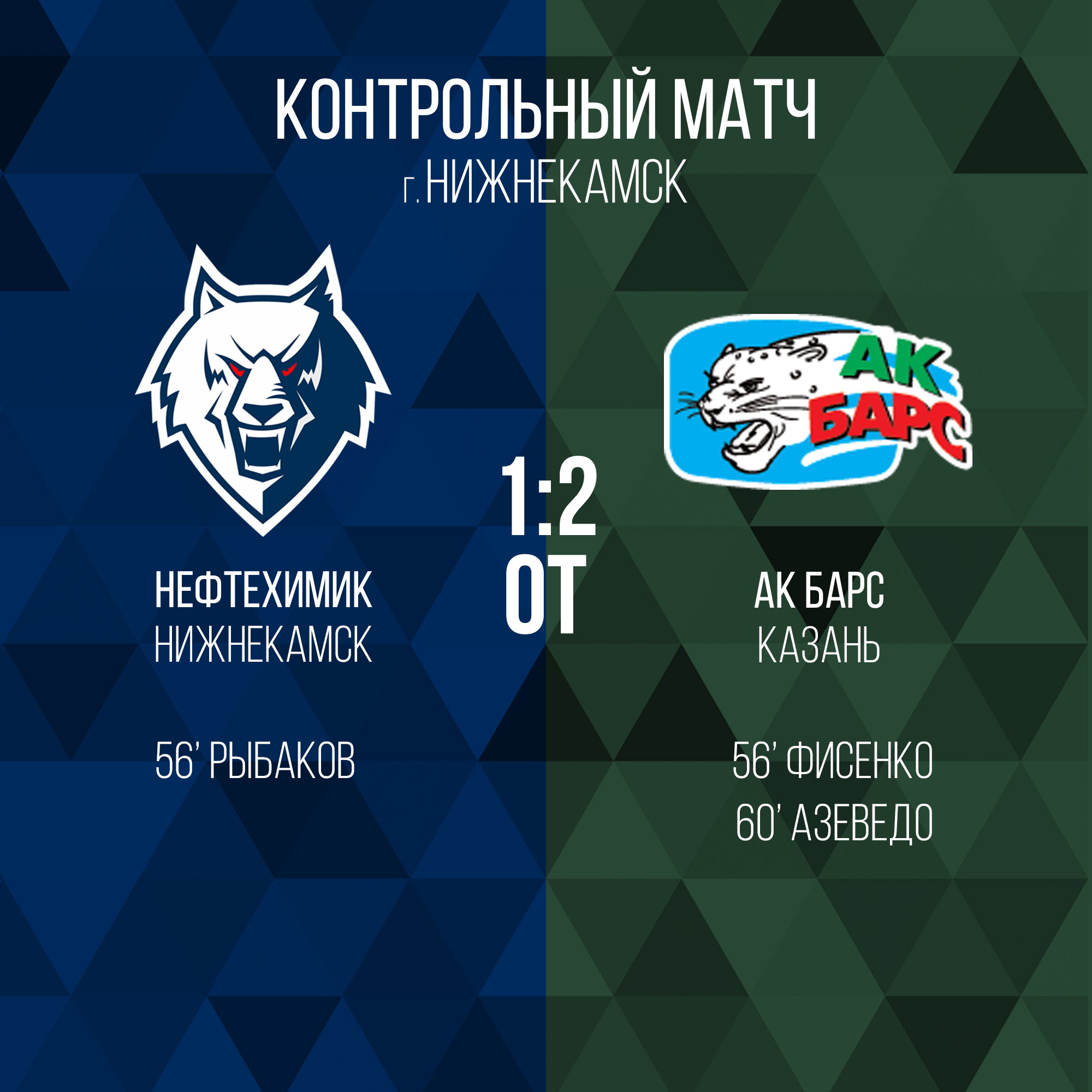 До 56-ой минуты игры на табло горел счет 0:0, но затем соперники в течении 50 секунд обменялись заброшенными шайбами. У казанцев отличился Михаил Фисенко, а у «волков» Александр Рыбаков. Поединок перешел в овертайм, где победу гостям принес Джастин Азеведо.Следующим соперником «Нефтехимика» по контрольным играм станет ЦСК ВВС. Поединок состоится 22 августа на «Нефтехим Арене».