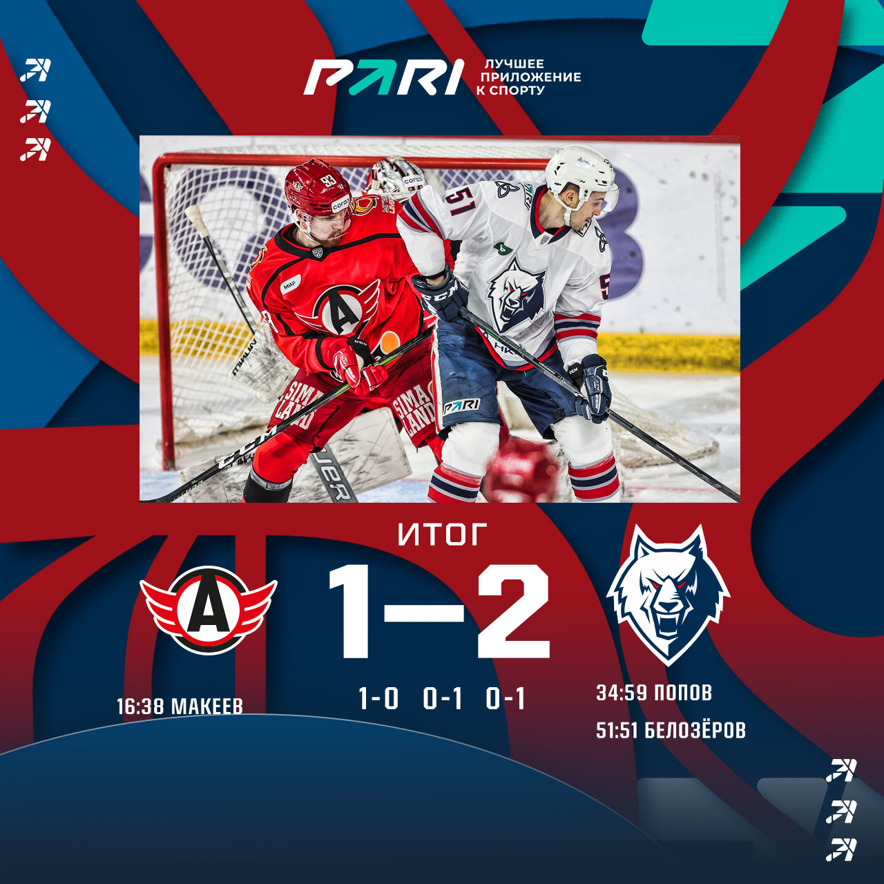 Успех получился волевым. Хозяева открыли счет в первом периоде. Во вторые 20 минут цифры на табло сравнял Егор Попов, а победным стал бросок Андрея Белозерова, который реализовал отличный пас Анселя Галимова в резкой контратаке «2 в 1». Побеждаем 2:1 и возвращаемся на восьмое место на Востоке.Следующий матч «волки» проведут в Уфе, где 29 января сыграют с «Салаватом Юлаевым».