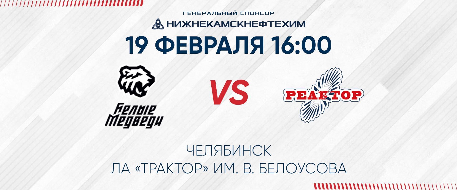 Сегодня в 16.00 по московскому времени «Реактор» сыграет повторную игру с «Белыми Медведями» в рамках Париматч регулярного чемпионата МХЛ.