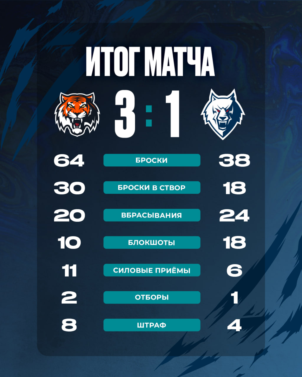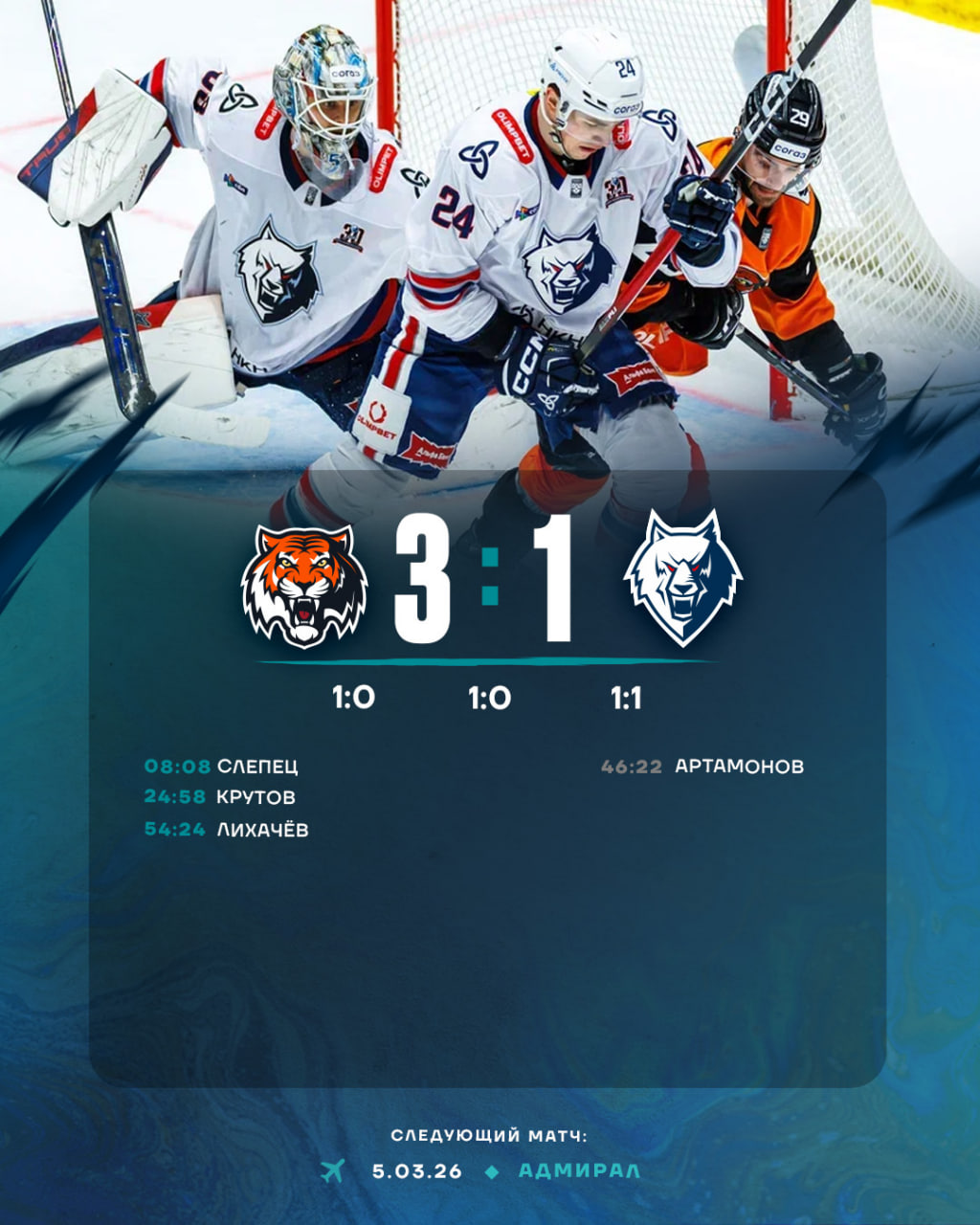 Во втором матче «Нефтехимика» с «Амуром» в составе нашей команды произошли всего две замены. Фёдора Крощинского и получившего повреждение Никиту Хлыстова заменили Иван Николишин и Егор Юзленко.Накануне «волки» провели на «Платинум Арене», и было видно боевой настрой команды на этот поединок. Уже на первой минуте наша команда была близка к тому, чтобы открыть счет. Однако бросок Артёма Серикова отразила штанга.