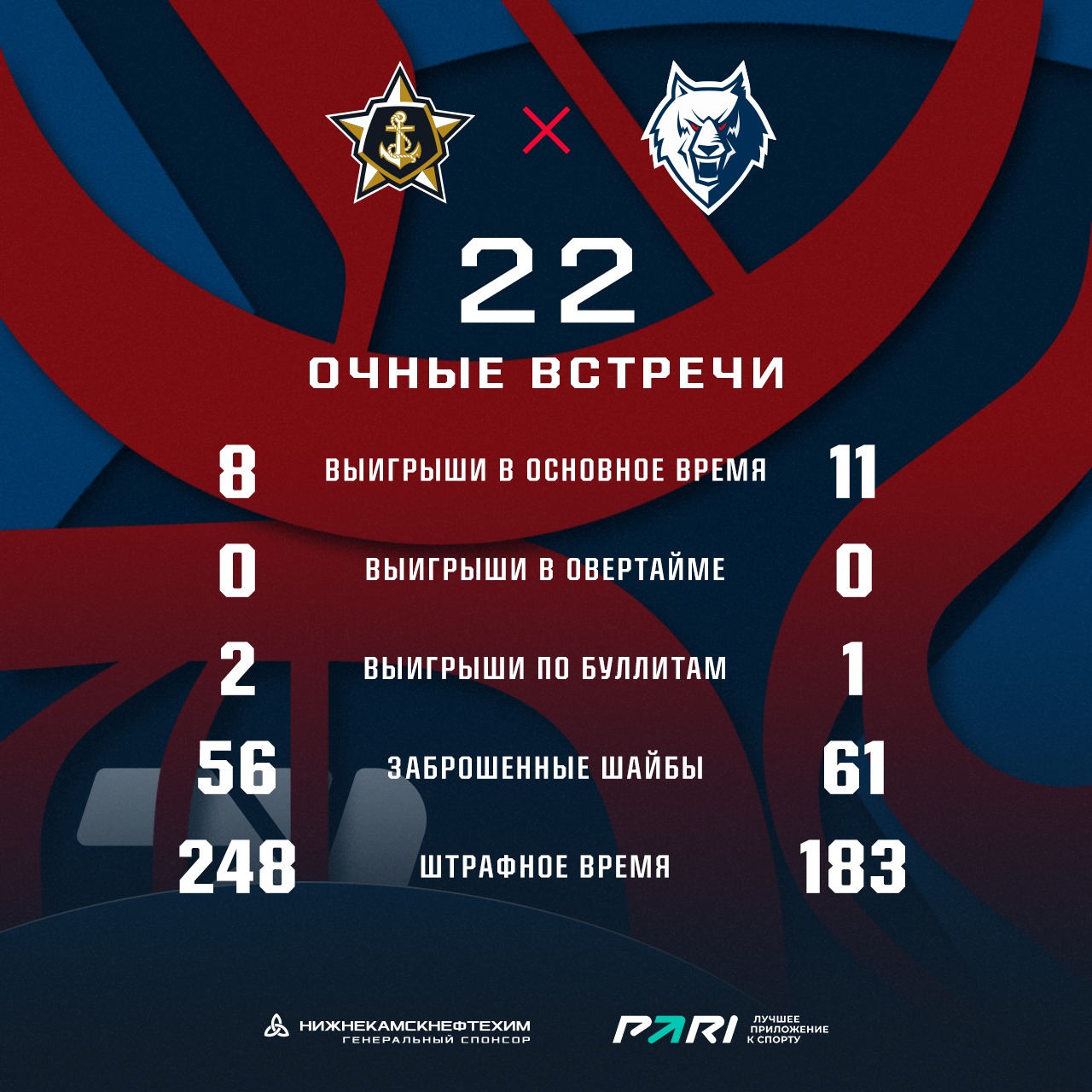 Ниже приводим обновленную статистику встреч команд в КХЛ.