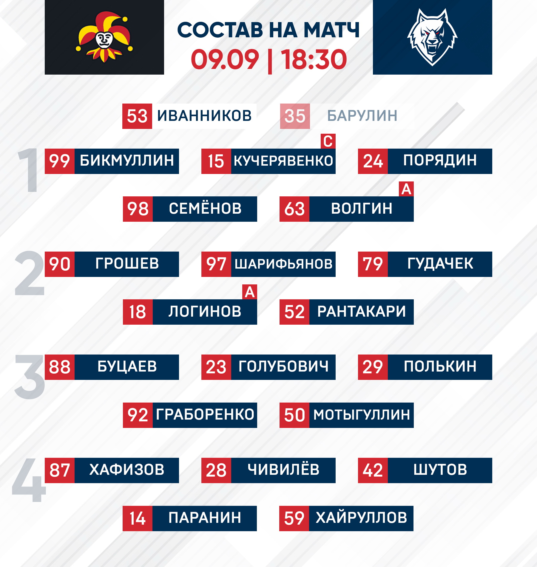 «Йокерит» - «Нефтехимик»: состав нашей команды