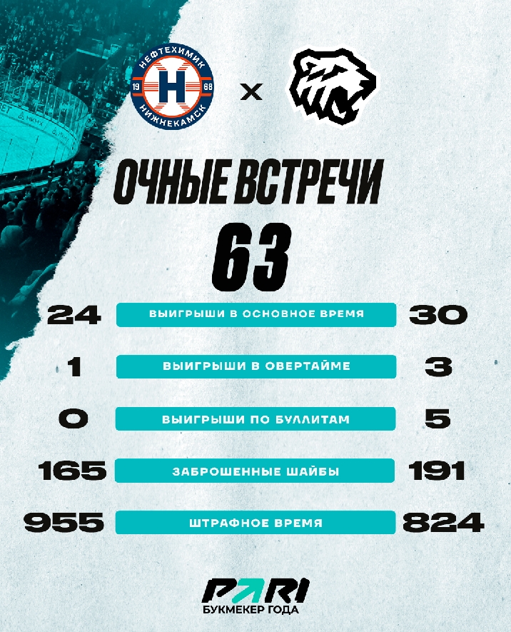 Ниже приводим статистику встреч нижнекамцев и челябинцев в истории КХЛ.