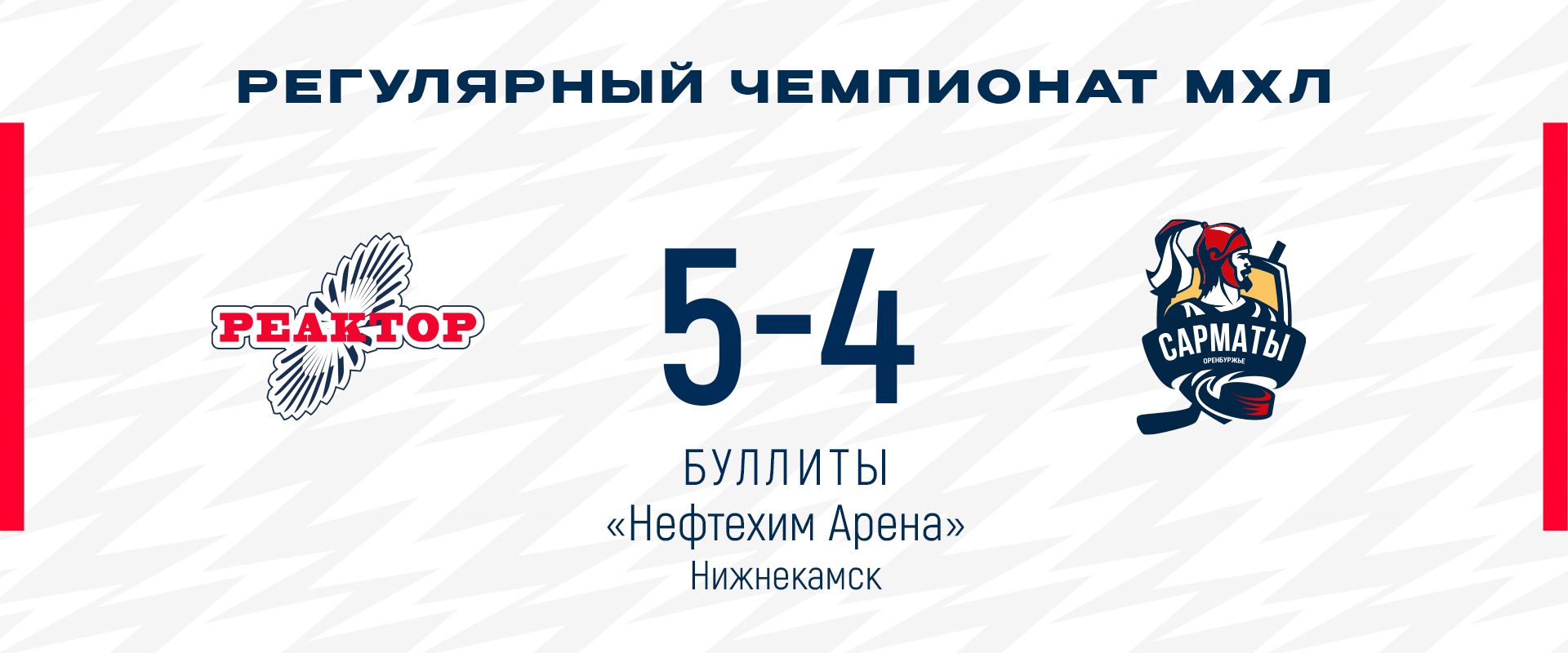 Первый период получился самым результативным в игре. Сначала оренбуржцы вышли вперед, но голы Григория Морозова и Айдара Харисова вывели вперед «реакторщиков». «Сарматы» быстро отыгрались. Однако спустя 17 секунд Данил Михайлов снова сделал счет в пользу нижнекамцев.Во втором периоде гости во второй раз смогли сделать счет равным. В заключительные 20 минут Михайлов забил свою вторую шайбу в игре, но оренбуржцы и в третий раз смогли отыграться. Поединок перешел в овертайм, а затем и в серию послематчевых бросков. На нее у «Реактора» вышел играть в воротах Азат Шакиров и этот ход сработал. Вратарь взял 3 из 4 бросков, а «реакторщики» реализовали все три свои попытки и добыли важнейшую победу.