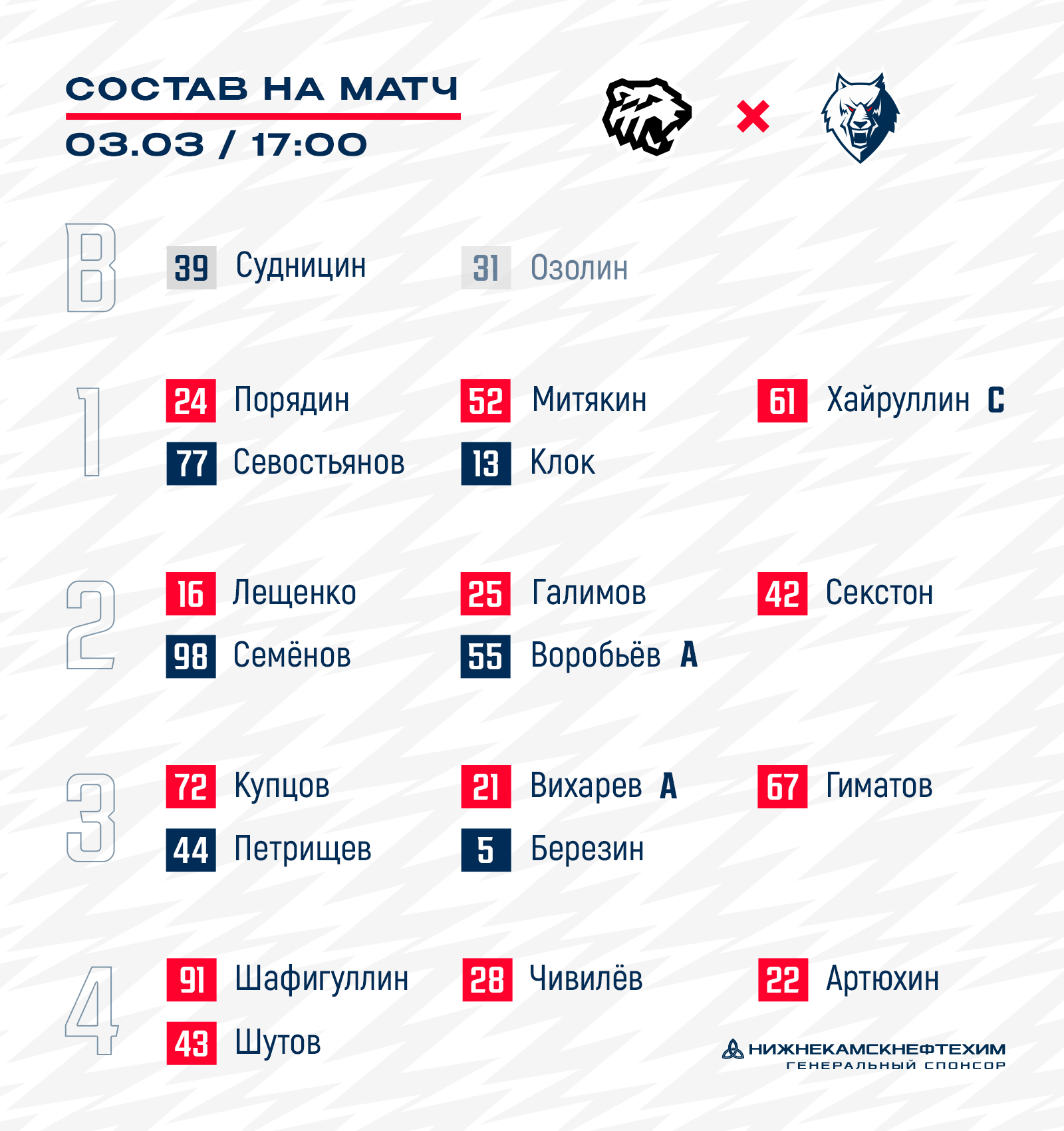 Стал известен состав «волков» на второй матч серии 1/4 финала Восточной конференции с «Трактором».